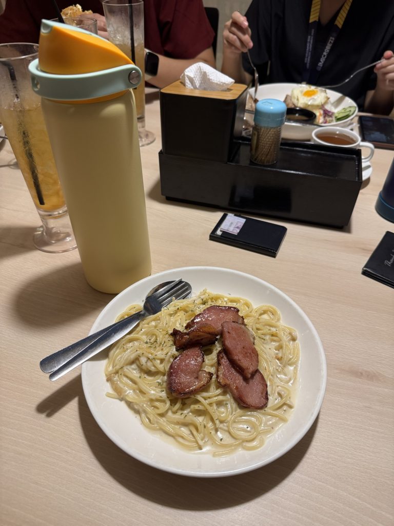 Let’s have a short recap of my day today. Morning had an introduction session to all the ward sisters at the 9th and 10th floor at KWKK HRPB hospital, then went for lunch with my groupmates at this Chinese-esk restaurant. I ordered a plate of spaghetti.